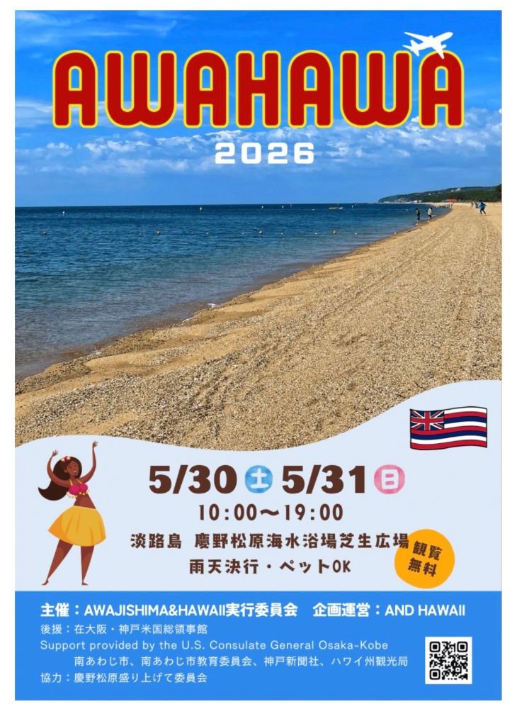 後援:在大阪・神戸米国総領事館、南あわじ市、南あわじ市教育委員会、神戸新聞社、ハワイ州観光局